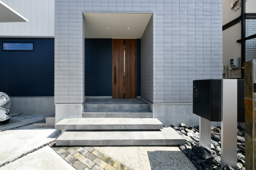 シンプルでありながら、質感や素材の組み合わせで奥行きを感じさせるファサード。
