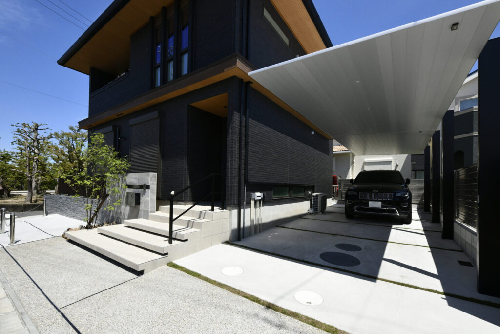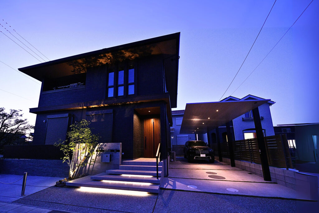 夜景まで美しい ブラック×タイルの洗練エクステリア