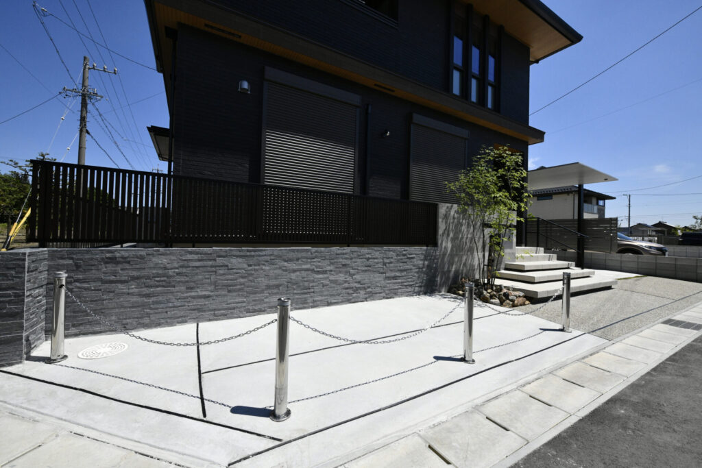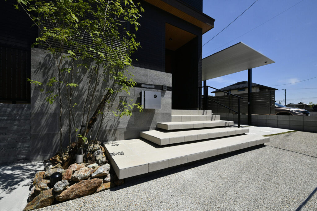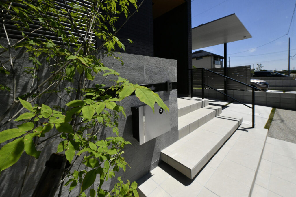 シンプルながらも視線を惹き付ける門まわりが住まい全体の印象を引き締めます。